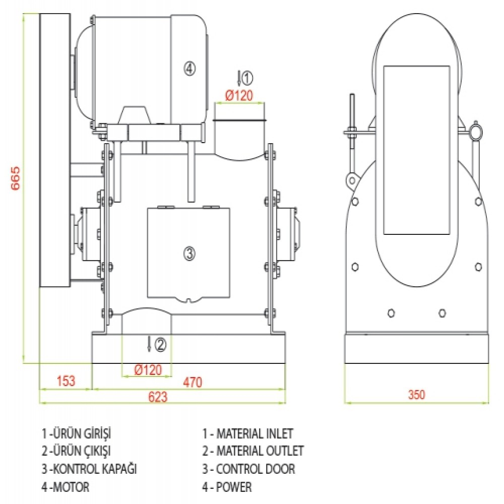 Tambur şeklindeki gövde saçtan imal edilmiştir. Montaj ayakları yere veya tavana vals altına asmak için uygundur. Makinanın ürün girişi ve çıkışı Ø12 O mm dir. Makinanın iç kısmında parçalayıcı paletler dönen rotor üzerine bağlanmıştır. Gövde boyunca paletler ürünü çarpmak suretiyle kepek üzerindeki yapışan unları ayırırlar. Motor bağlantısı V kayışlı veya direkt akuple bağlanabilir. Normal tip 4 kw motor kullanılır.