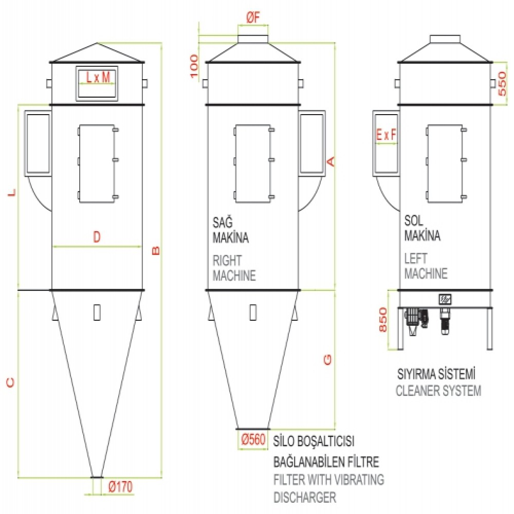 | Torba Uzunluğu /Bag length mm | L | 1200 | 2000 | 2400 | 1200 | 2000 | 2400 | 1200 | 2000 | 2400 | 1200 | 2000 | 2400 | 1200 | 2000 | 2400 | 1200 | 2000 | 2400 |