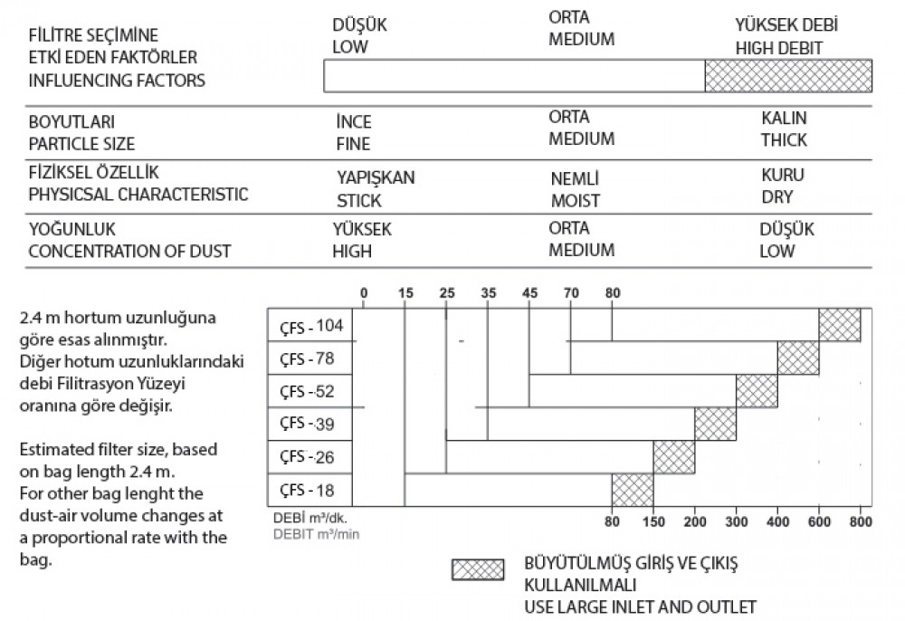 | Filitre alanı / Filter area m | 8 | 13 | 16 | 11 | 19 | 23 | 17 | 28 | 35 | 23 | 38 | 46 | 34 | 57 | 70 | 47 | 77 | 95 | |