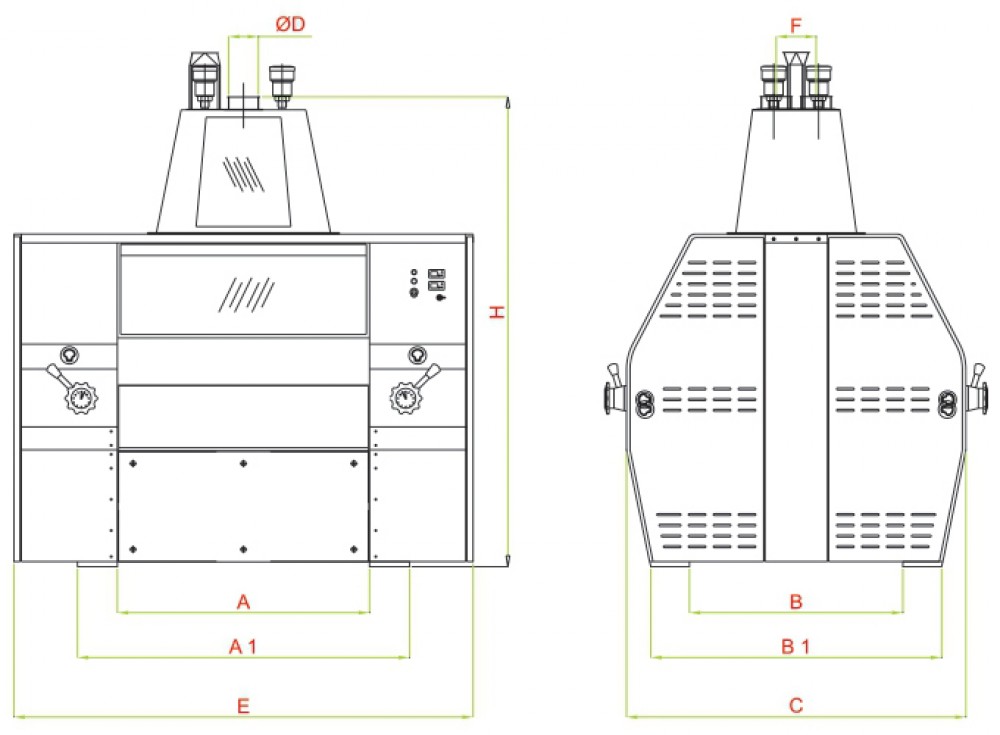 | Type | A | A1 | B | B1 | C | OD | E | F | H | Net / Net | Brüt / Gross | mm | |